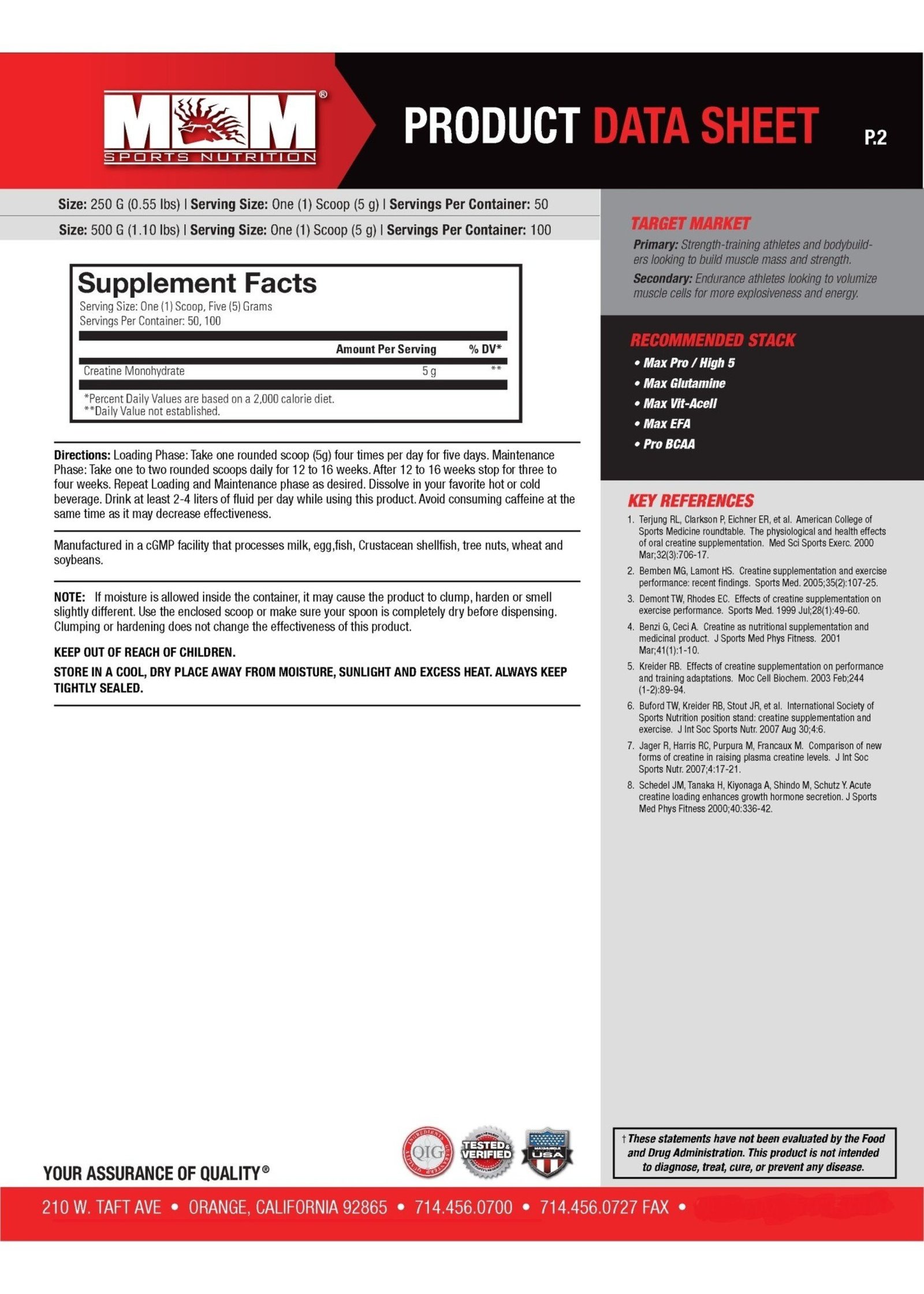 Datos del suplementoTamaño de la porción: 1 cucharadaPorciones por contenedor: 50.100 |